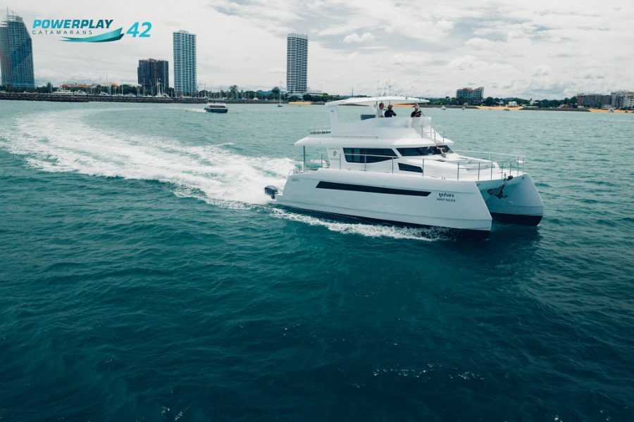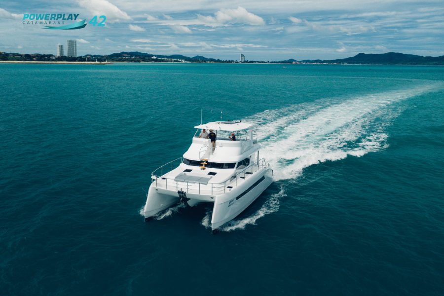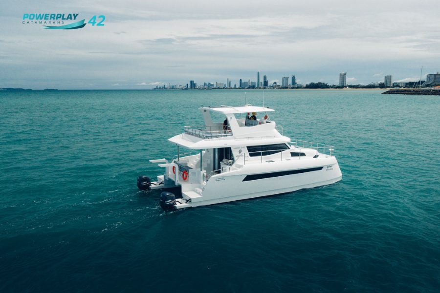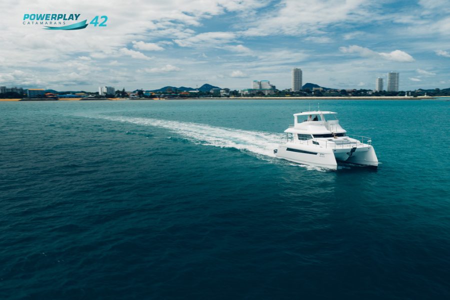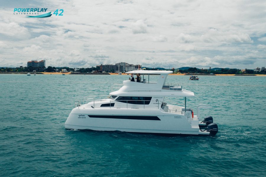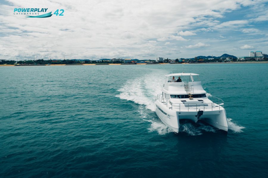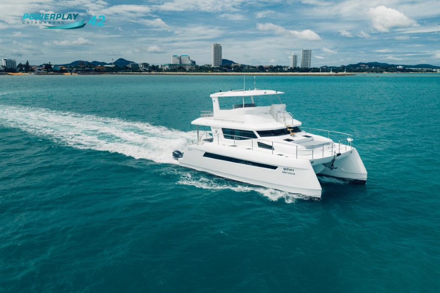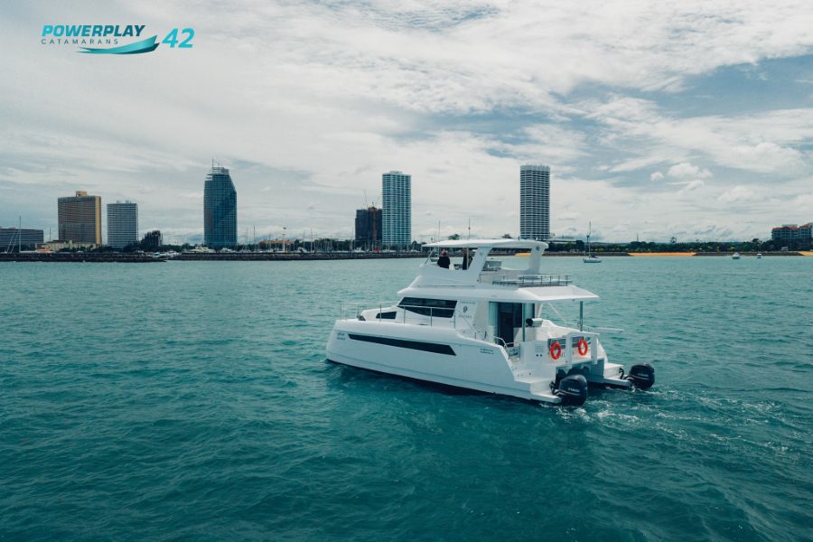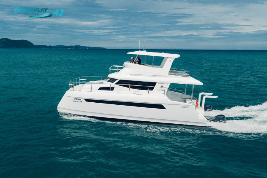 Introducing the Powerplay 42 Charter Power Catamaran – a high-performance, 4-cabin vessel designed to elevate your charter operations through a perfect blend of luxury, efficiency, and reliability. Built using advanced FRP vacuum infusion to ISO 1227 standards, the Powerplay 42 offers lightweight strength, smooth cruising, and long-range capability. With charter-ready functionality, refined interior finishes, and optional high-tech upgrades, this stunning power catamaran delivers both leisure and profitability in one sleek package.