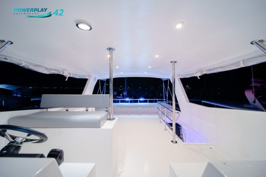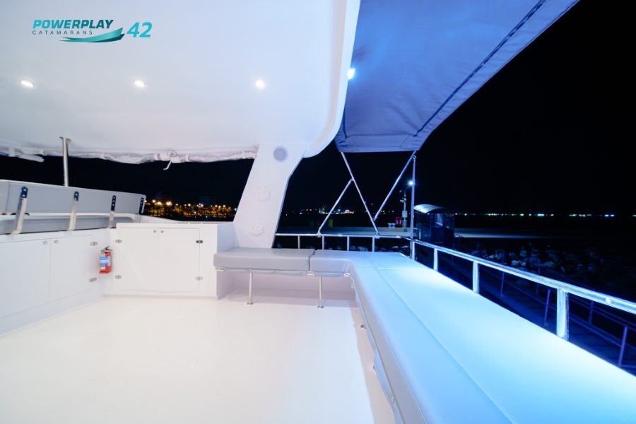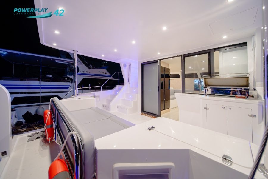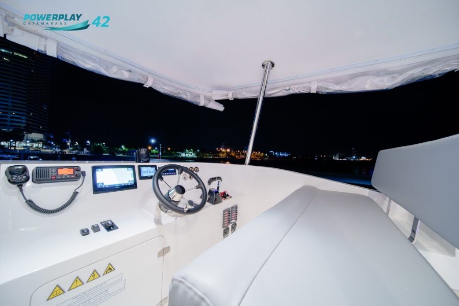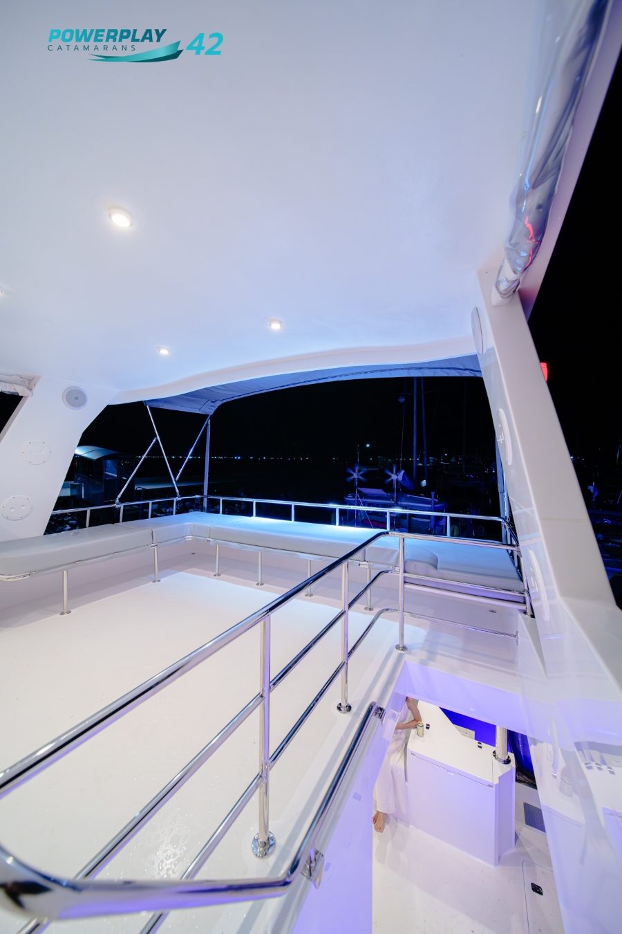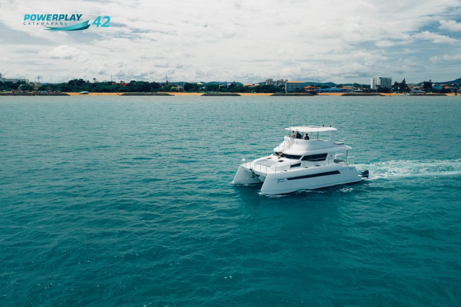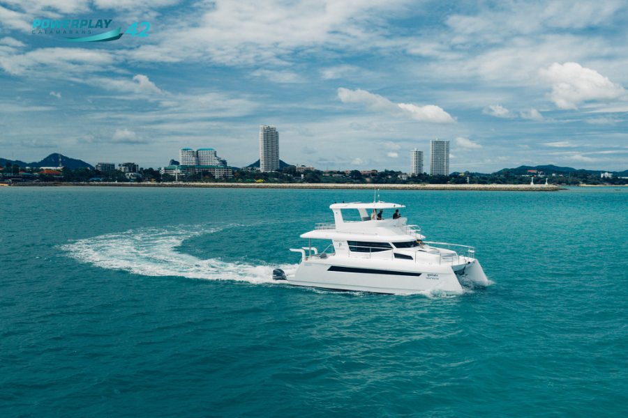 Introducing the Powerplay 42 Charter Power Catamaran – a high-performance, 4-cabin vessel designed to elevate your charter operations through a perfect blend of luxury, efficiency, and reliability. Built using advanced FRP vacuum infusion to ISO 1227 standards, the Powerplay 42 offers lightweight strength, smooth cruising, and long-range capability. With charter-ready functionality, refined interior finishes, and optional high-tech upgrades, this stunning power catamaran delivers both leisure and profitability in one sleek package.