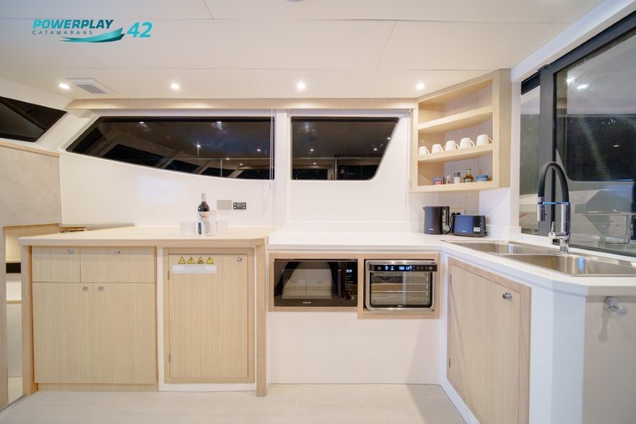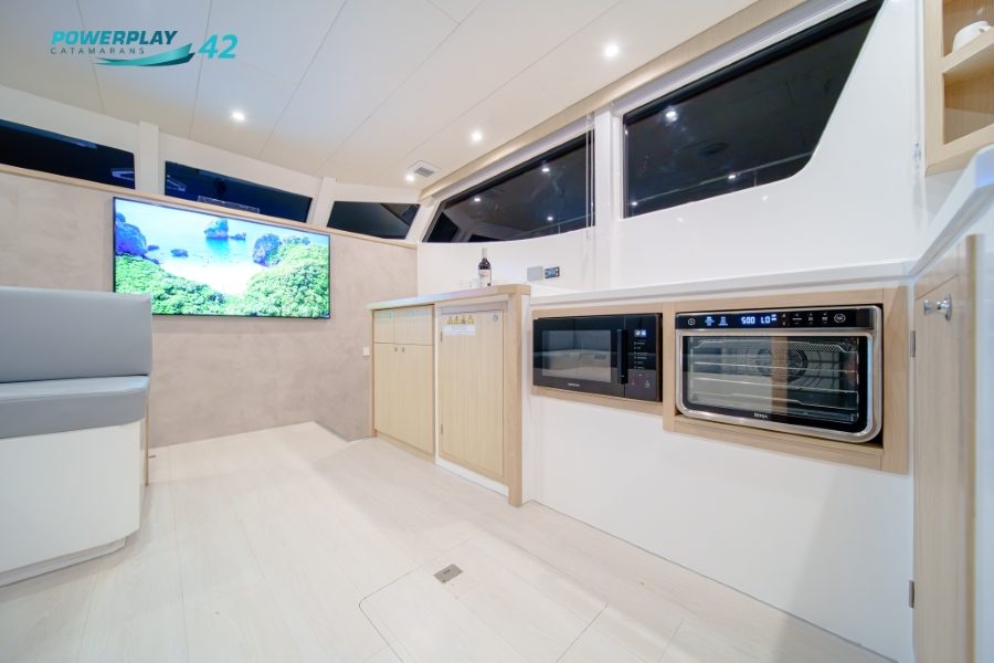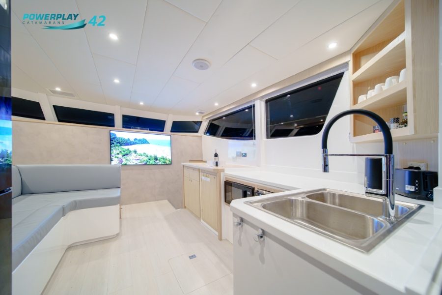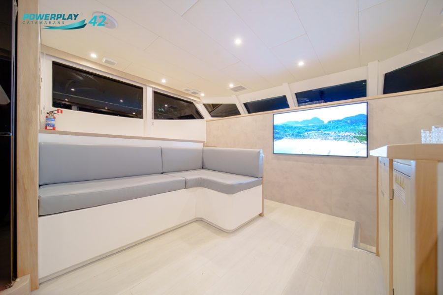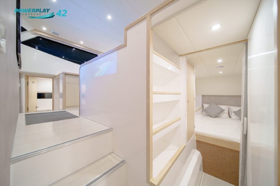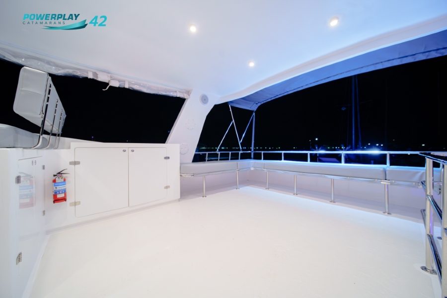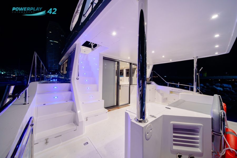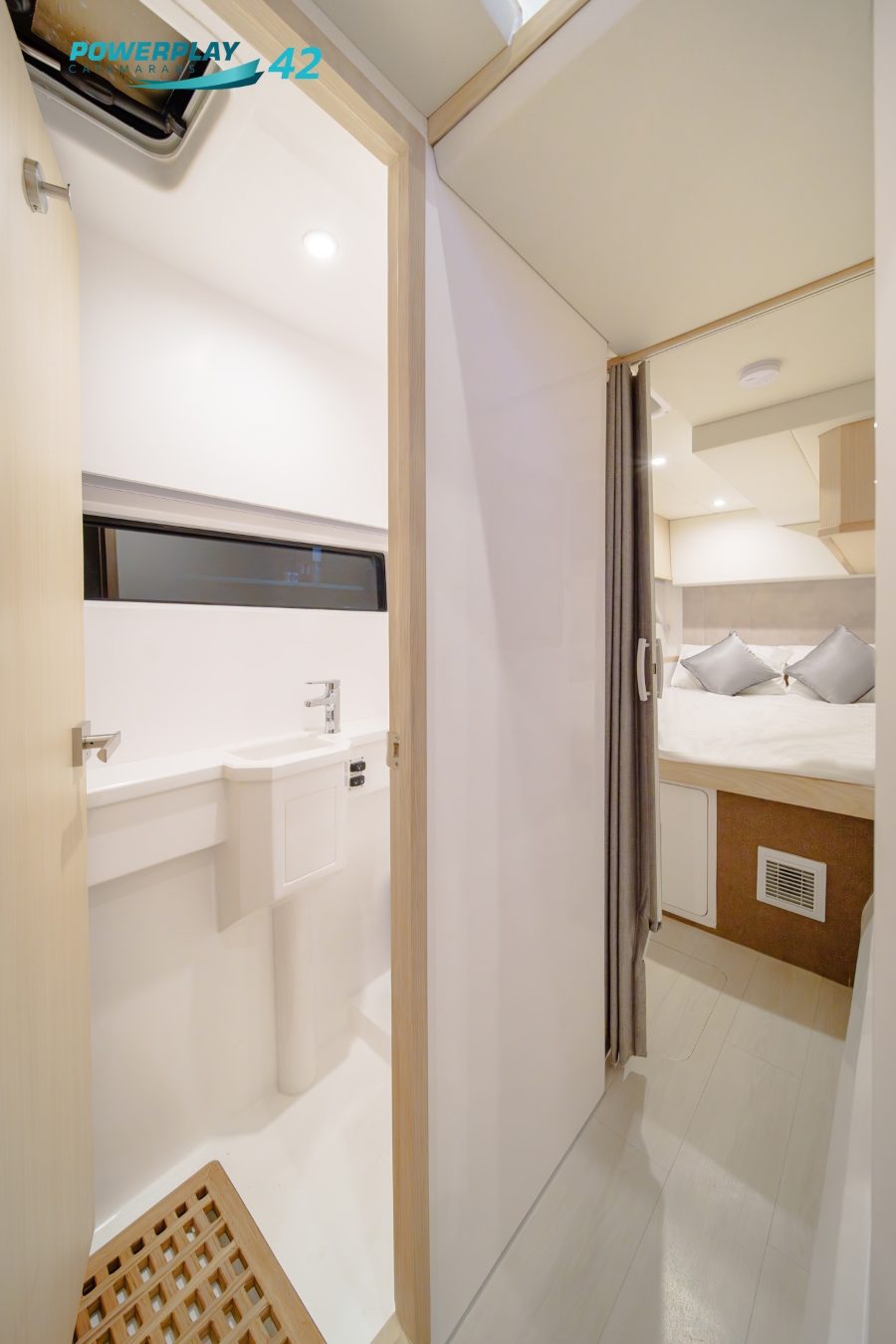 Introducing the Powerplay 42 Charter Power Catamaran – a high-performance, 4-cabin vessel designed to elevate your charter operations through a perfect blend of luxury, efficiency, and reliability. Built using advanced FRP vacuum infusion to ISO 1227 standards, the Powerplay 42 offers lightweight strength, smooth cruising, and long-range capability. With charter-ready functionality, refined interior finishes, and optional high-tech upgrades, this stunning power catamaran delivers both leisure and profitability in one sleek package.
